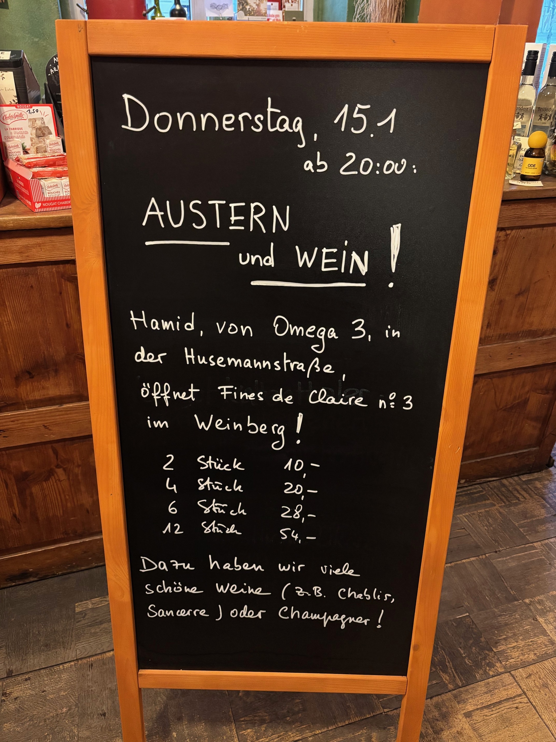 hamid, von omega 3, der tolle fischladen in der husemannstrasse, öffnet fines de claire no3 im weinberg!